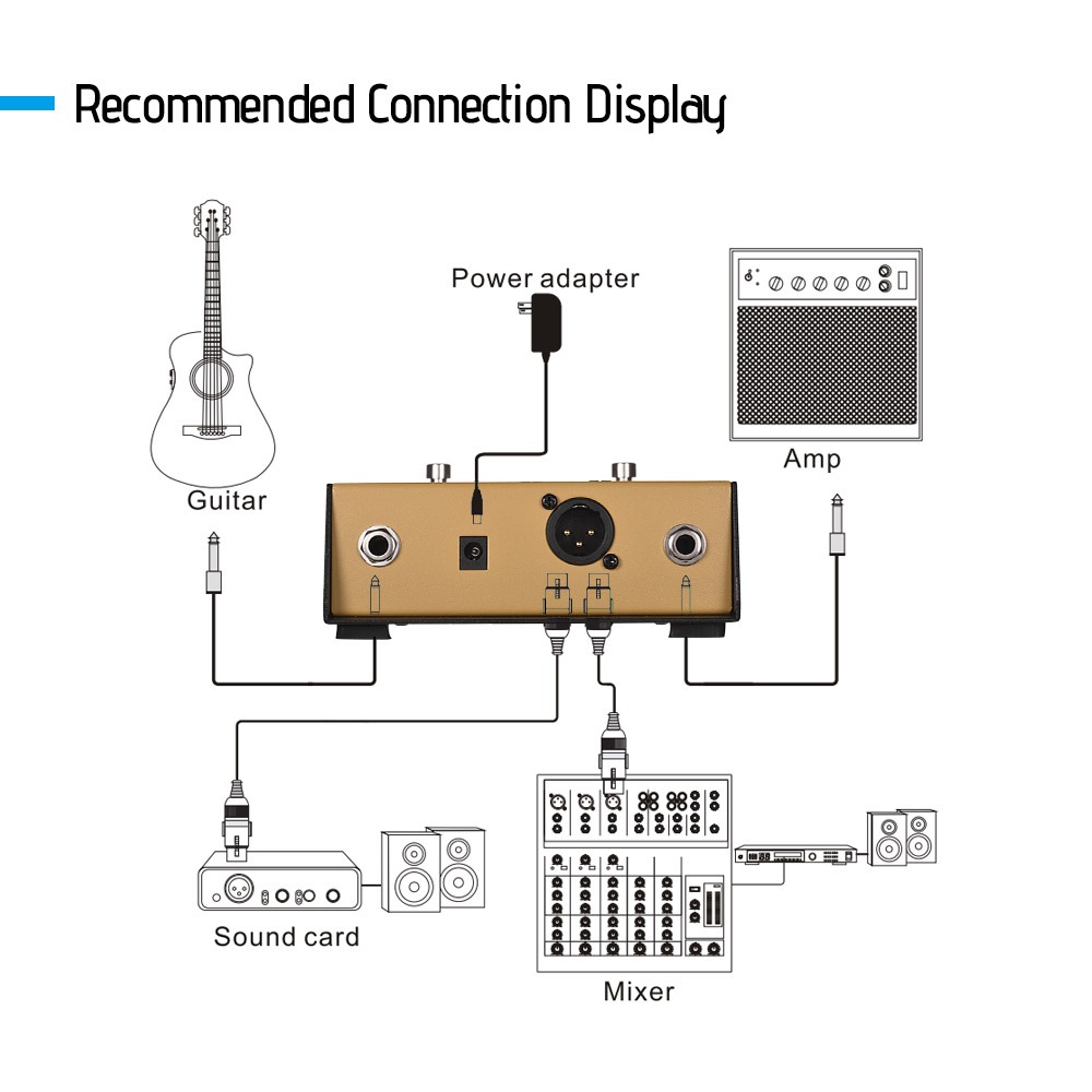 Perfect for performing and recording with a balanced output to your mixer or recording device, at the same time enabling you to continue to use your acoustic amp as a stage monitor if you wanted. The AD-2 can be powered with a battery or a 9v DC power adapter.